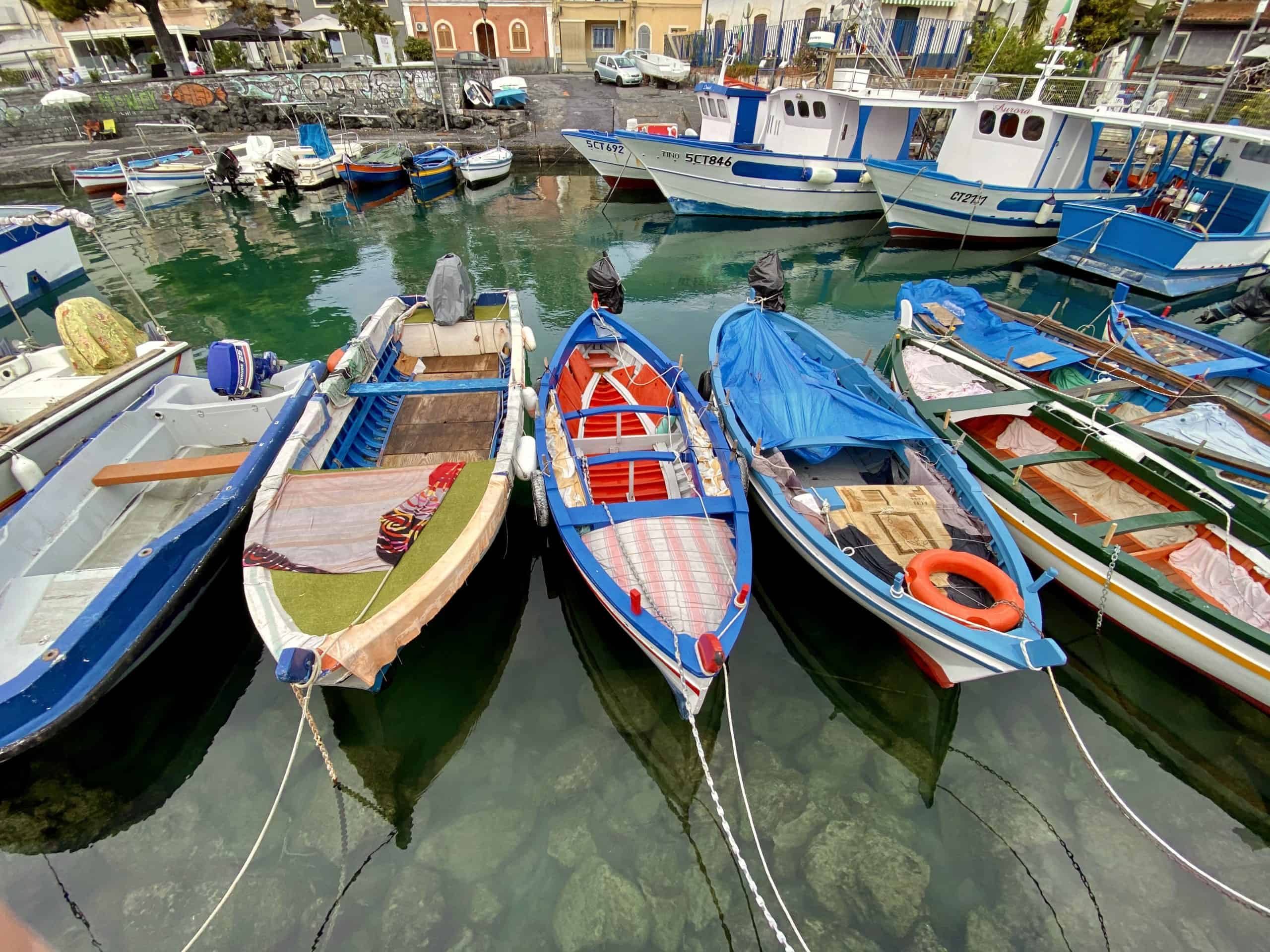 About a 30-40 minute walk along the coast, you will come to a cute little fishing village San Giovani Li Cuti with its black lava rock beach. To be honest, a coastal walk may sound lovely, but it wasn’t as scenic as it sounds. You are walking alongside a busy road most of the way with a train track on the other, so maybe opt to drive there or take local transport.